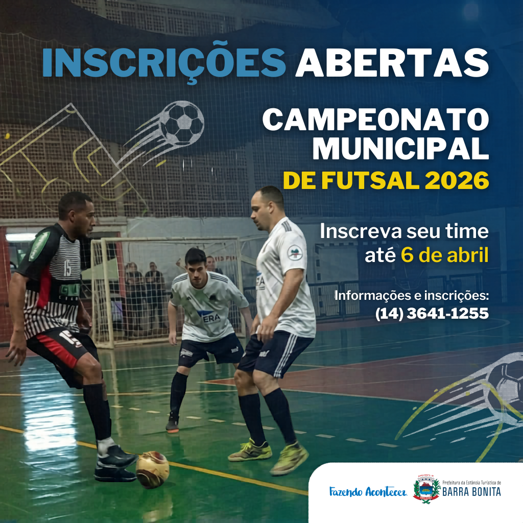 O Campeonato Municipal de Futsal 2026 de Barra Bonita já está com inscrições abertas — mas corre, porque o prazo vai até 6 de abril!