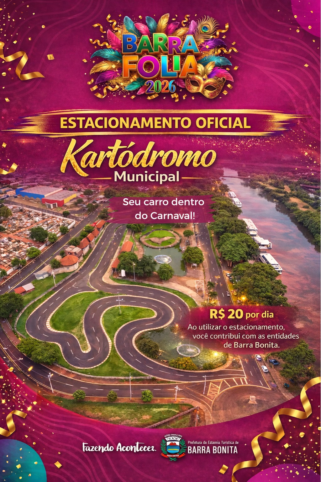 Quem vai curtir o Carnaval Barra Folia 2026 já pode garantir mais do que comodidade: ao utilizar o estacionamento oficial do evento, você também contribui diretamente com as entidades assistenciais de Barra Bonita!